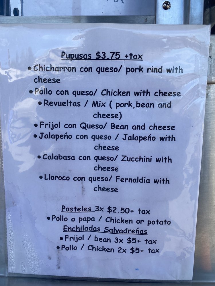 “ Been driving past this food truck many times as we like getting Kona Island Coffee in the same parking lot around the corner and noticed this place always has people there. SO decided to give them a try and I'm SO GLAD we did!!! Got the 2 Pupusa plate - the Chicharron and Polo Con Queso. HIGHLY recommend especially with the pickled cabbage and we added the mild salsa! It was SO GOOD... not as stuffed as I'm used to but still had tons of flavor!! Our FAVORITE is the enchilada pollo combo! OMG - SO good! Keep in mind this is a Salvadoran enchilada - not your mexican type enchilada that sits on a masa disk. It was cruncy, meaty, with so much flavor - again - adding the cruncy cabbage and the salsa - a flavor and texture bomb. AND their rice and beans had lots of flavor as well - beans - so creamy and deep flavor - rice so fluffy and light! We also decided to try their pasteles asada - which are like little fried empanadas! Crispy, crunchy and lots of meat!! So good... And of course our all time favorite which it's only available at Salvadorian places - their plantanos con frijol y creama - which is the plantanos with creamy beans and their creama... The most DELICIOUS bite!! This is our family all time favorite and I'm so happy they have it and they are so close by!! Will definitely be coming back and trying other meats and dishes. Want to try their plantano empanada - more sweet than savory!! :) OH and service - the guy taking our order was so patient - explaining all the dishes - and it was all packed up nicely and he repeats the order when he hands it to you so you feel confident you're getting everything!! ”